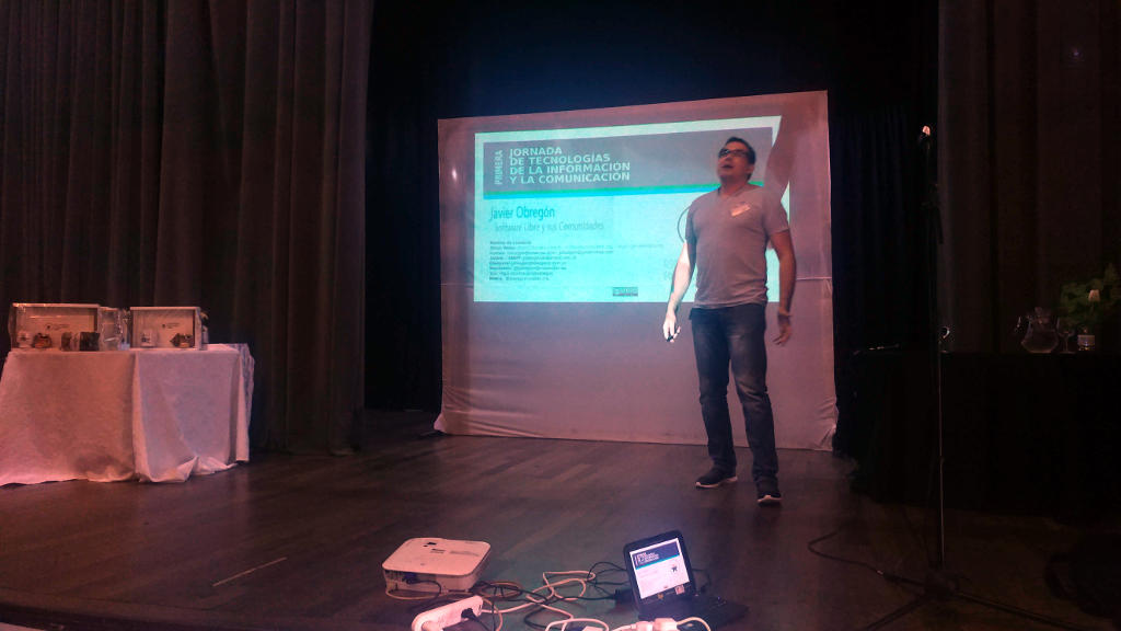 Y finalizando la primera parte de las Jornadas le llegó el turno a Javier Obregón, militante del software libre, quien compartió con la audiencia el desarrollo de las comunidades de Software Libre, haciendo hincapié en la importancia que ello conlleva para los pueblos originarios que resultan relegados por la oferta comercial.