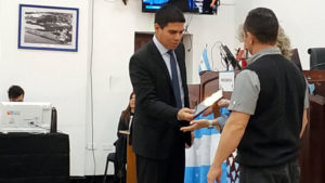 Durante la 9° Sesión Ordinaria del Honorable Consejo Deliberante de la Ciudad de Posadas, se hizo la entrega del certificado que declara de Interés Municipal al Acto 95° Aniversario de la EPET N° 1, de la mano de actual Presidente de la entidad y ex alumno de la Institución, Fernando Meza, acompañado por los ediles Anahí Repetto y Martín Arjol.