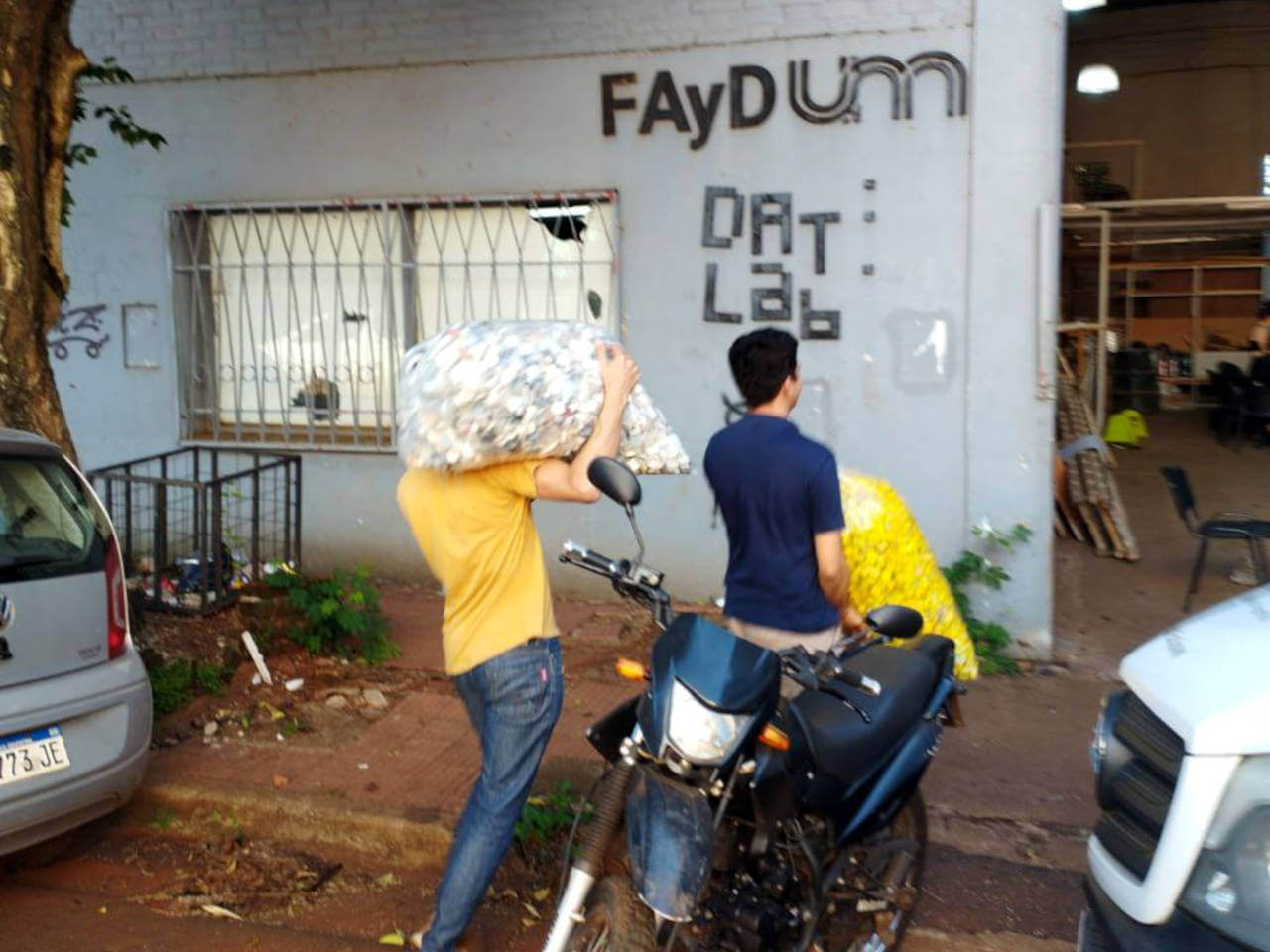 Con motivo del centenario de nuestra institución, alumnos de la carrera de Diseño Industrial de la Facultad de Artes y Diseño de la UNaM, Ezequiel Jara, Dario Fidel y su Prof. Javier Balcázar, están realizando el logo de nuestra institución con material reciclado.