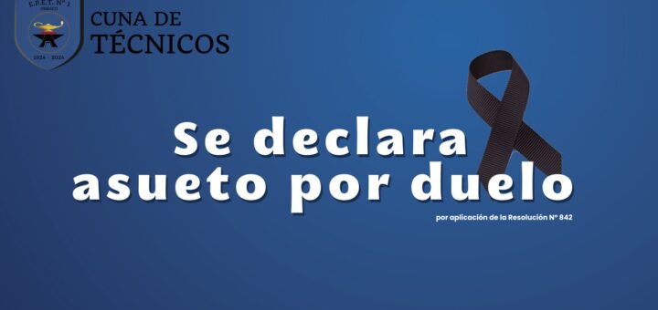 Se informa que ante el fallecimiento de un alumno de la Institución y por aplicación de la Resolución N° 842 del CGE se declara asueto por duelo en el día de la fecha. Por...