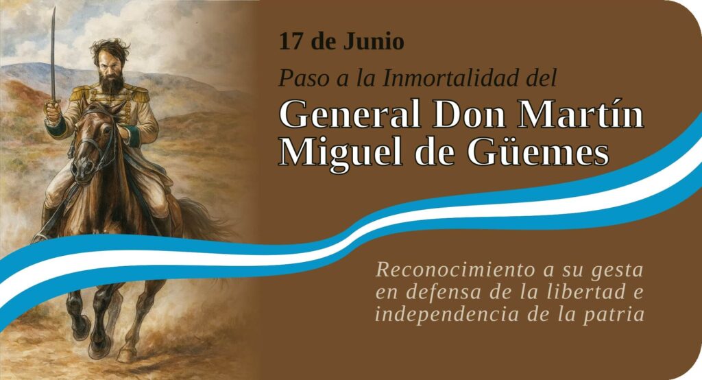 Conmemoramos este día en memoria del fallecimiento, el 17 de junio de 1821, del General Martín Miguel de Güemes, figura