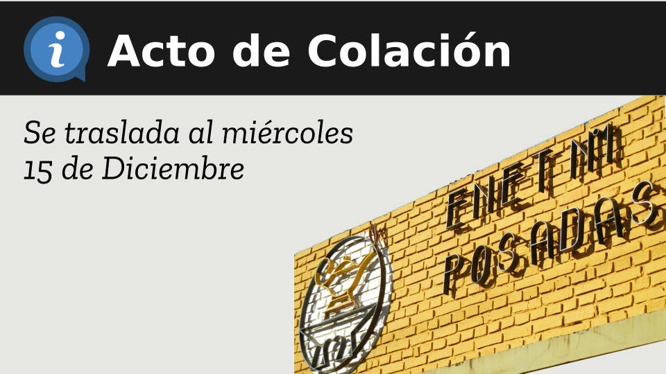 Atendiendo a las inclemencias climáticas el Acto de Colación, previsto para la jornada de hoy, ha sido trasladado al próximo […]