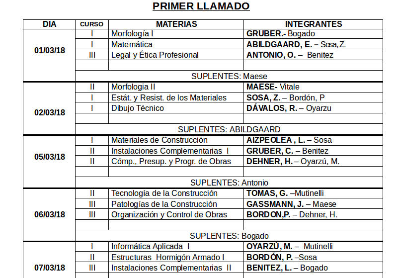 La Tecnicatura Superior en Construcciones Civiles informa que desde el 14 y hasta el 23 de Marzo se llevará a